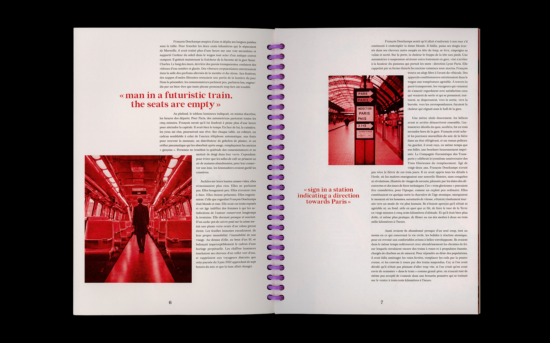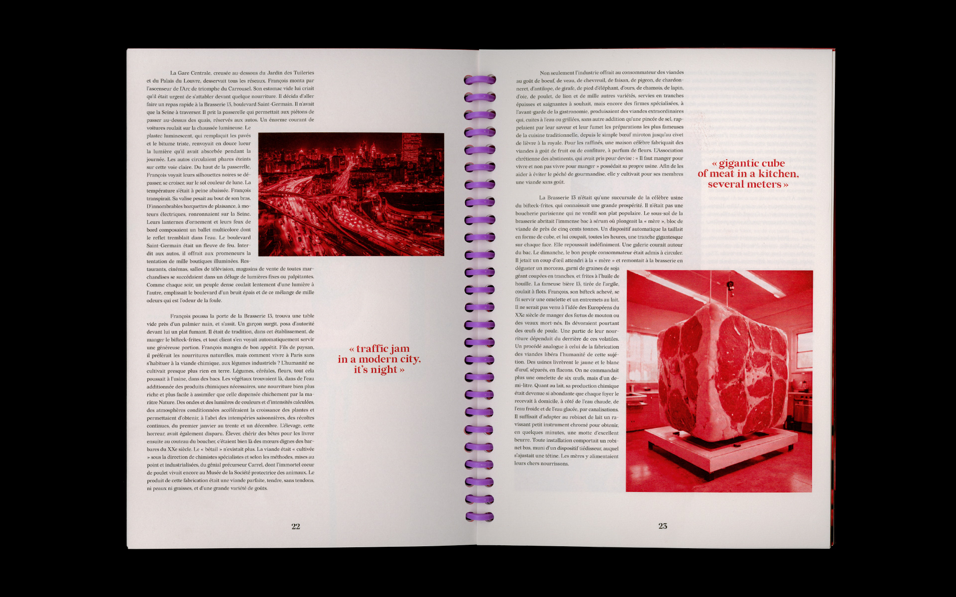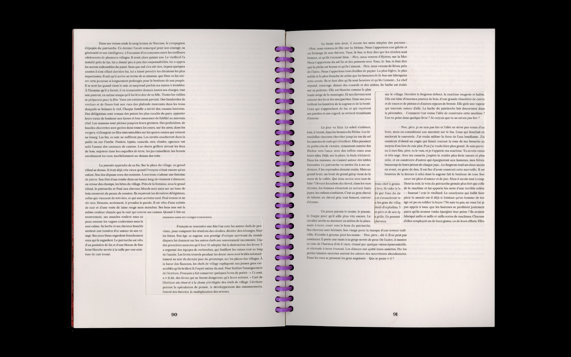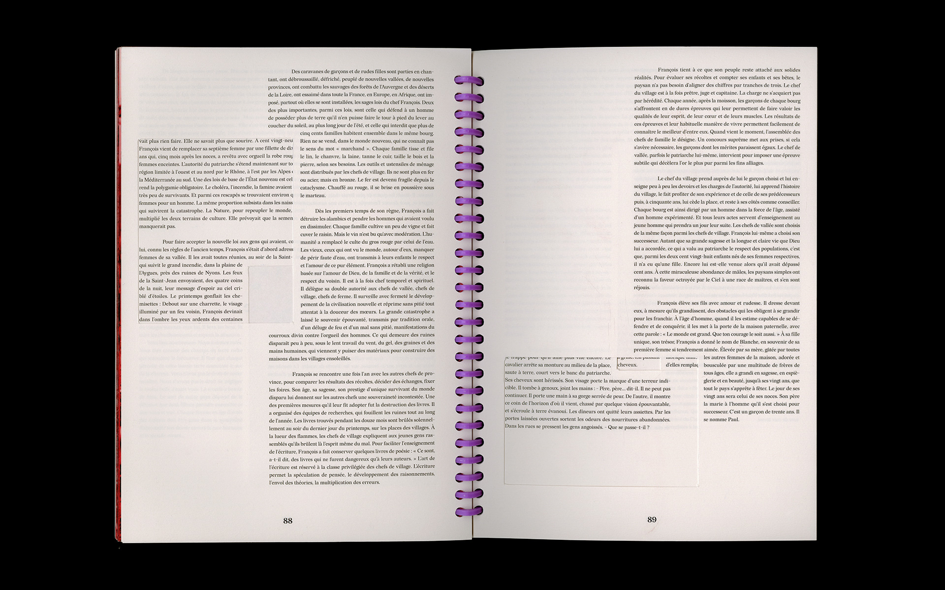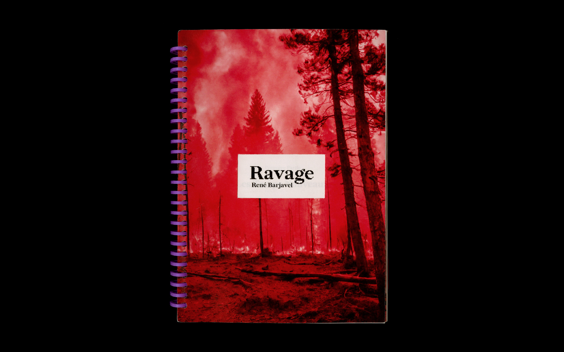 Réédition du roman de science-fiction « Ravage » de René Barjavel (1943). Édition explorant le rapport entre le texte et l'image, où une intelligence artificielle génère les illustrations à partir du texte lui-même. Les décalages et coïncidences visuelles créent une étrangeté qui renforce la montée en tension du récit.